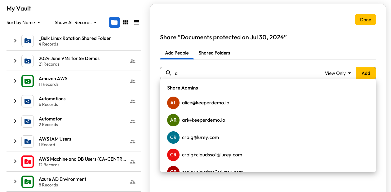 Files can be securely shared either directly to other Keeper users, or within a Shared Folder.