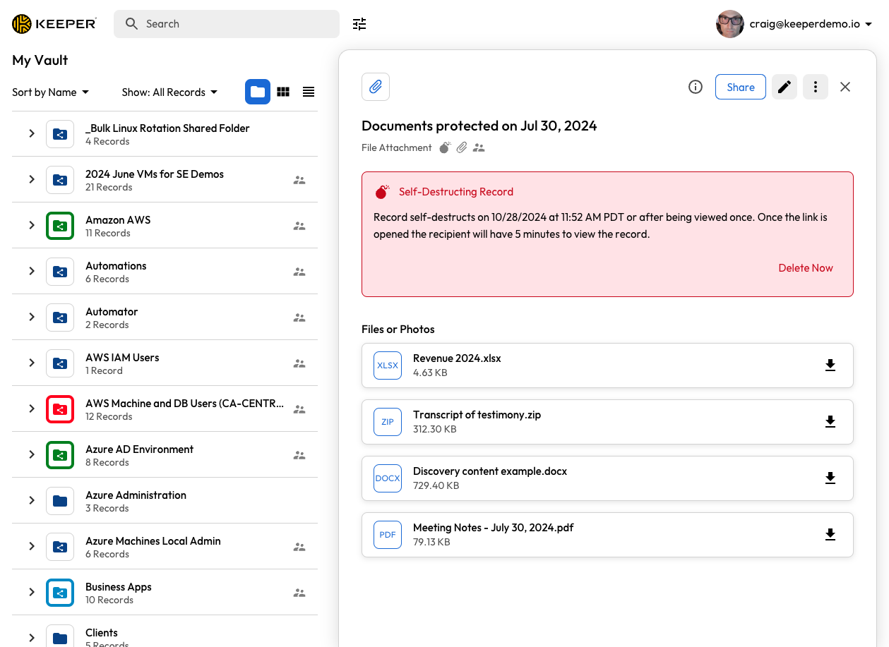 Learn more about self-destructing records [at this page](https://docs.keeper.io/en/enterprise-guide/sharing/self-destructing-records).