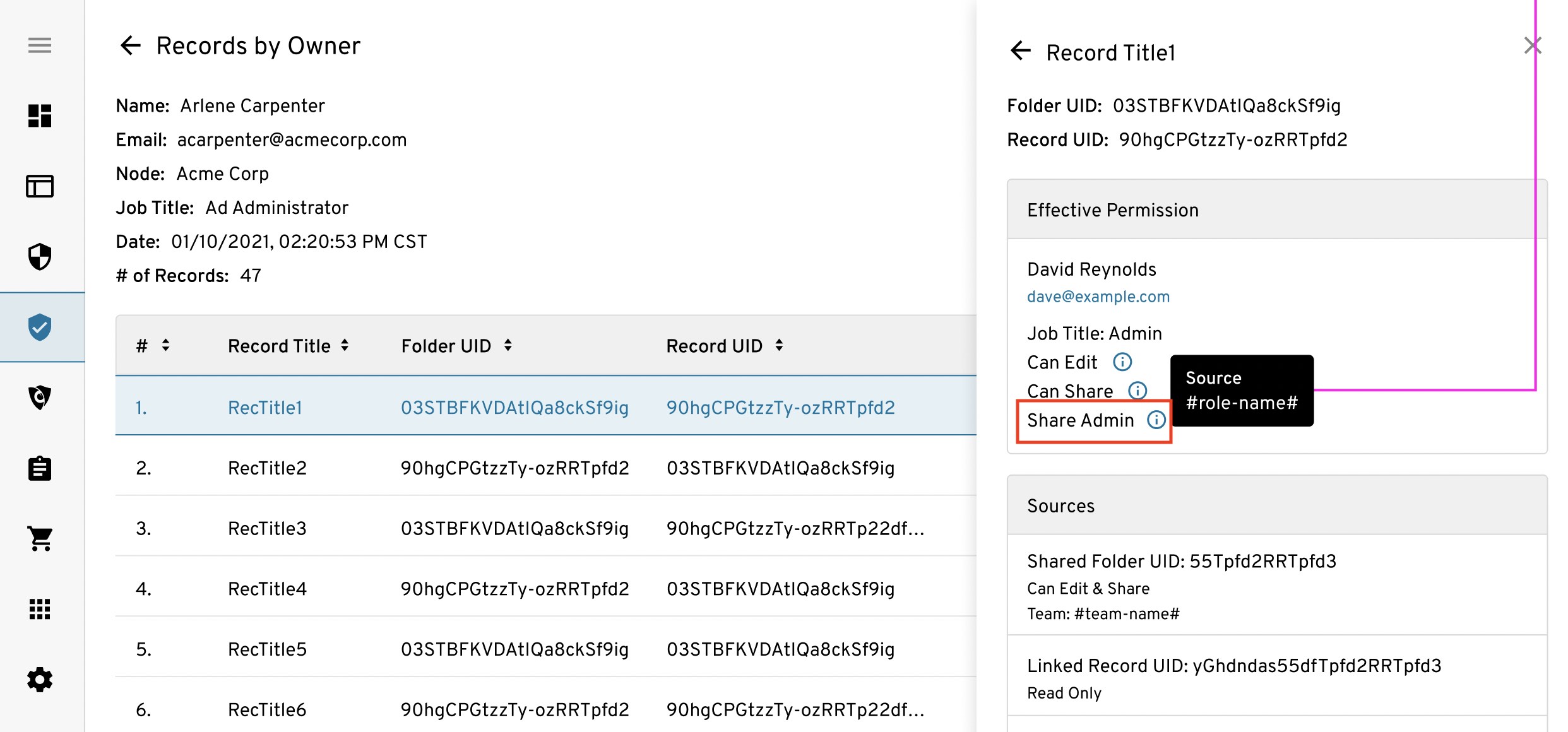 Share Admins can add or remove users and records from Shared Folders, no matter who owns the record.