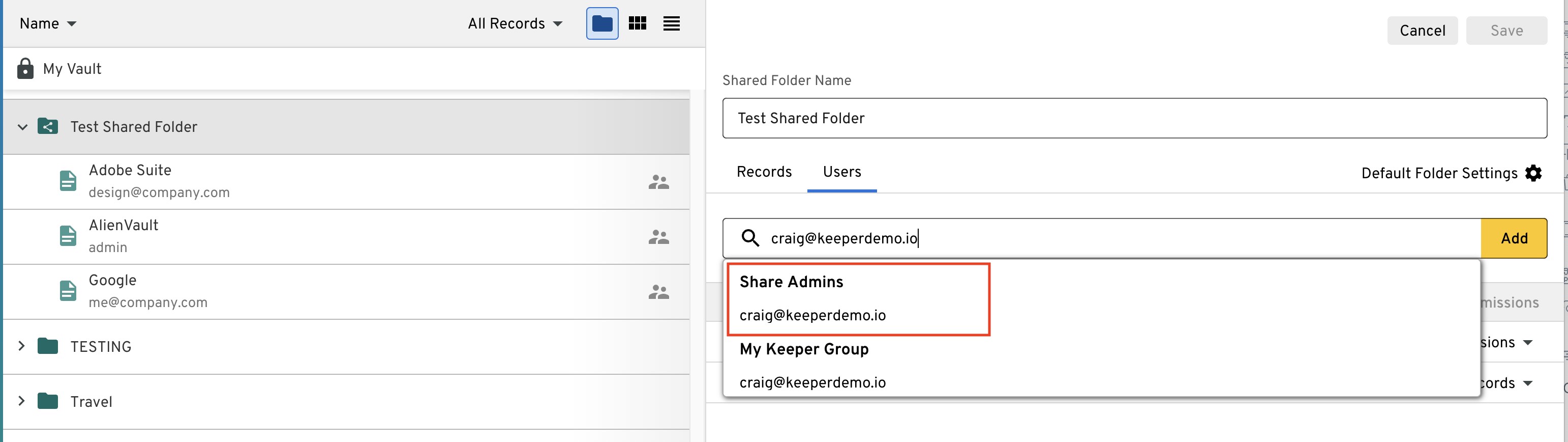 Keeper's Share Admin feature is a role-based permission that gives administrators elevated access rights over your organization's shared folders and shared records.