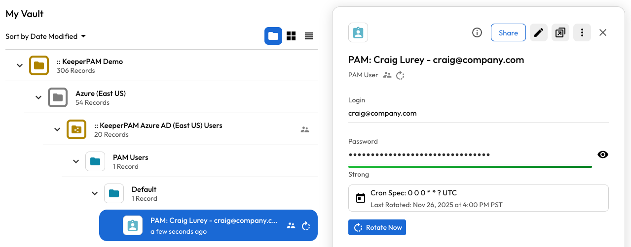 Immediate Rotation - Performs on-demand rotation of the password in the target directory via the Keeper Gateway