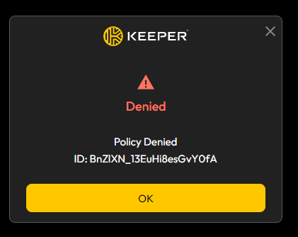 * **Deny control on success**: When the policy matches, it immediately blocks the execution and notifies the user.