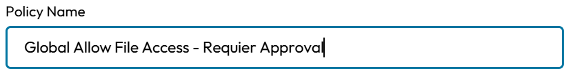 Enter a descriptive name for your new LOTL Justification File Access Policy. Including the name of the targeted process in the policy name (e.g., `_FileAccess_Justify_WScript`) is recommended to make the policy easily identifiable in the policy list.