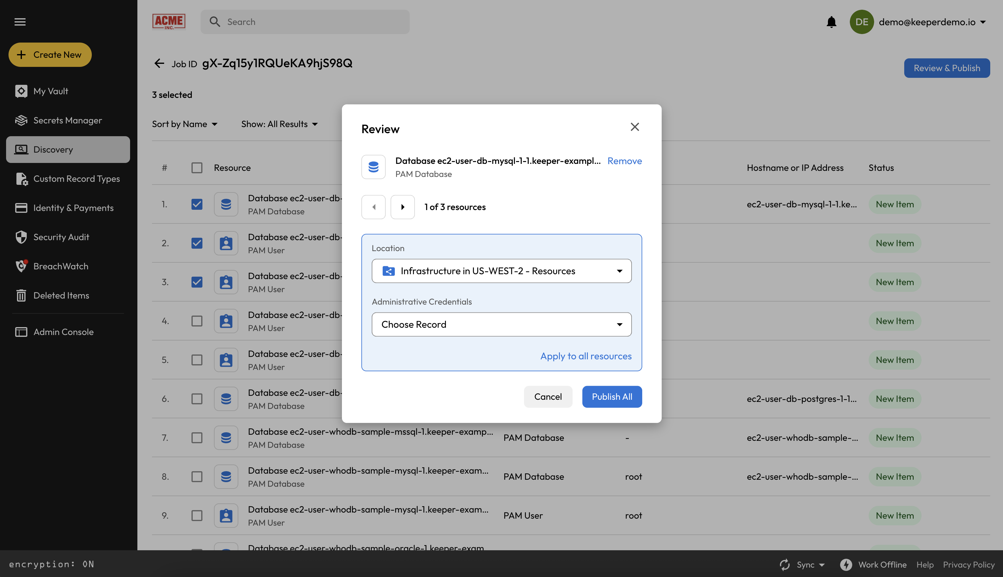 Now that the Discovery is complete, additional resources can be found by running another job against the same Gateway and PAM Configuration. If Admin Credentials have been linked to KeeperPAM Resources, these credentials will be used to discover local user accounts within each resource.