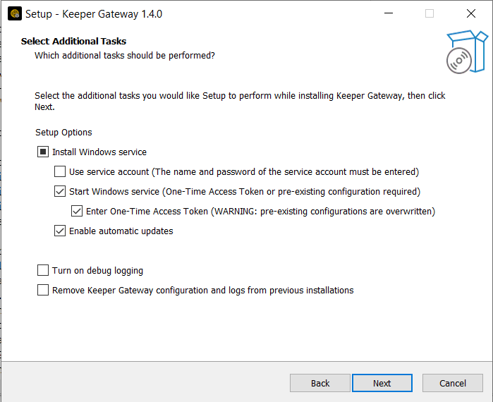 * This setup option will create a new Task Scheduler task for updating the Gateway.