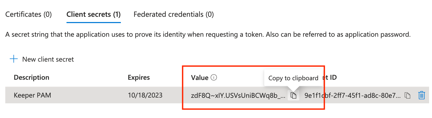 The KSM CLI needs the credentials for the Azure account to set secrets. These credentials are stored in a Keeper record which the CLI tool can access using Keeper Secrets Manager.