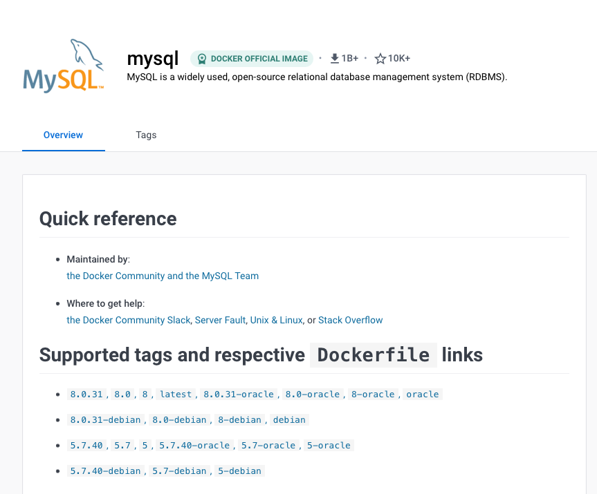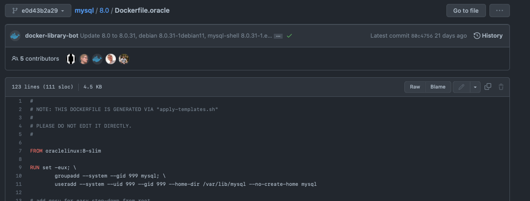 The official MySQL dockerfile is below: