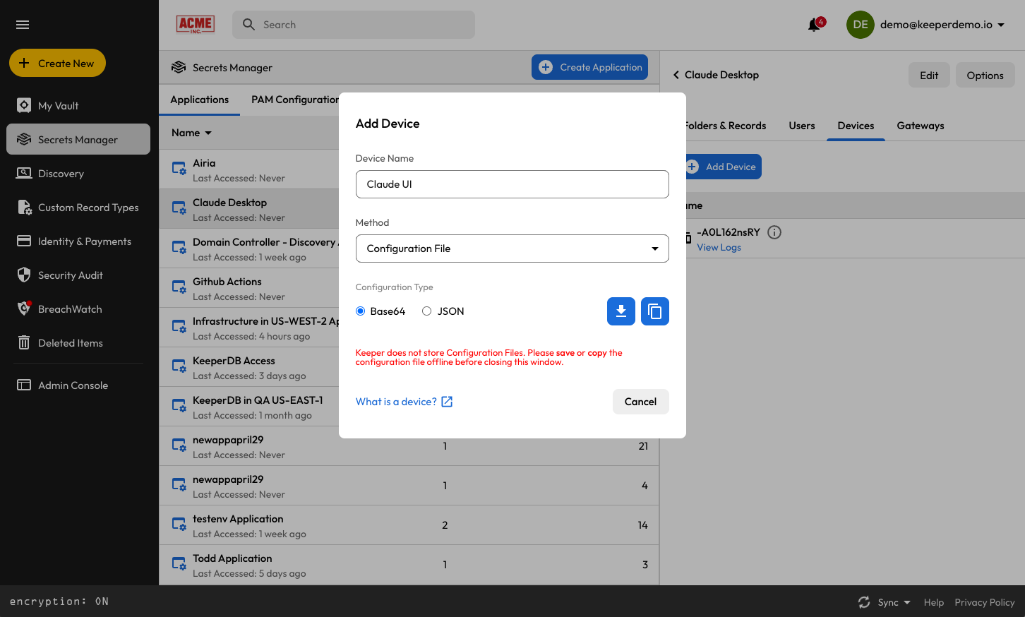 For additional setup details, see: <https://github.com/Keeper-Security/keeper-mcp-node/>