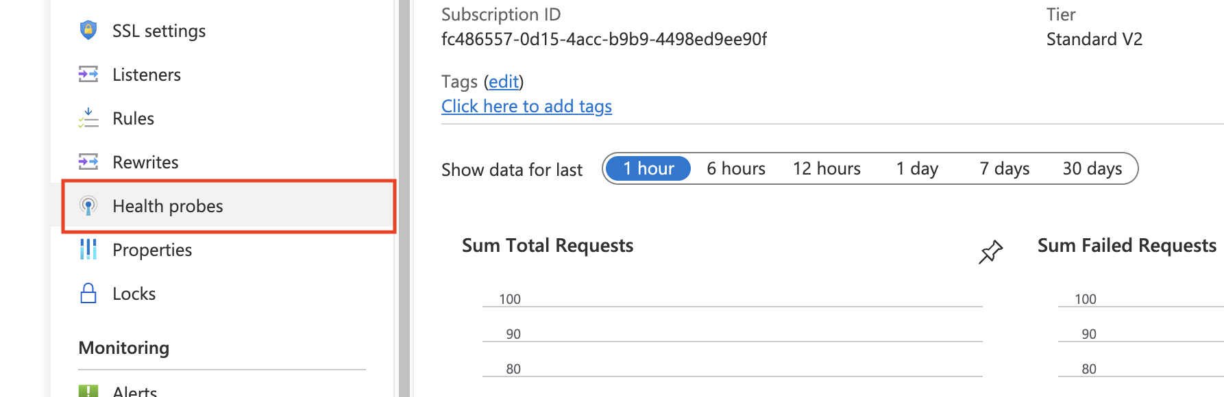 A health probe will inform the App Gateway that the Automator service is running. From the Azure portal interface, open the Automator App Gateway and then click on "Health probes" from the left menu.
