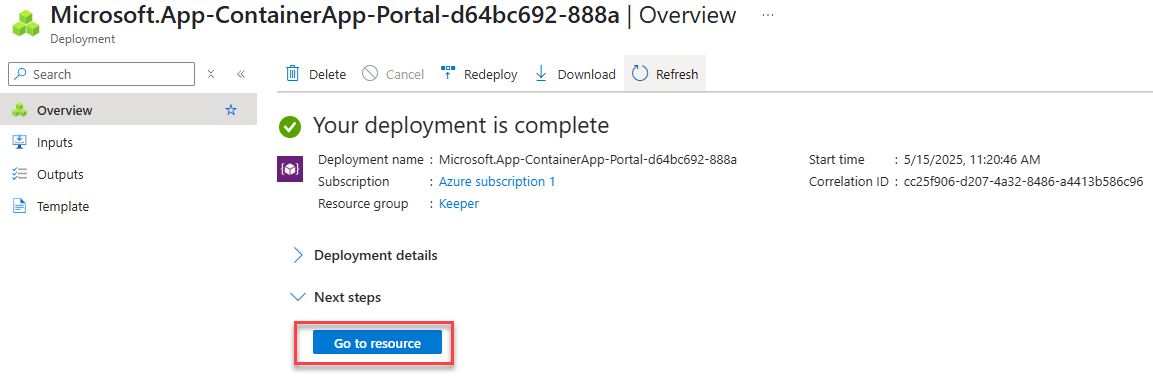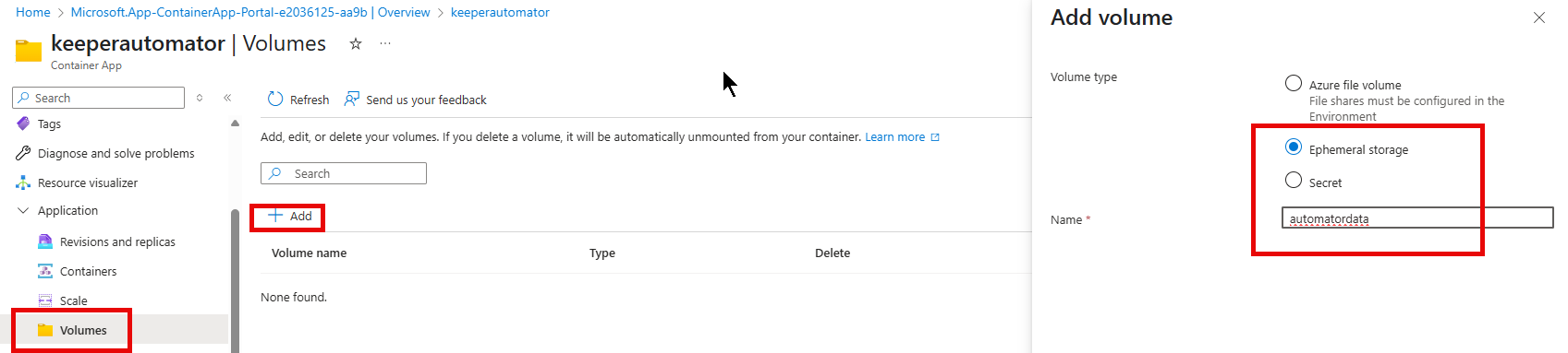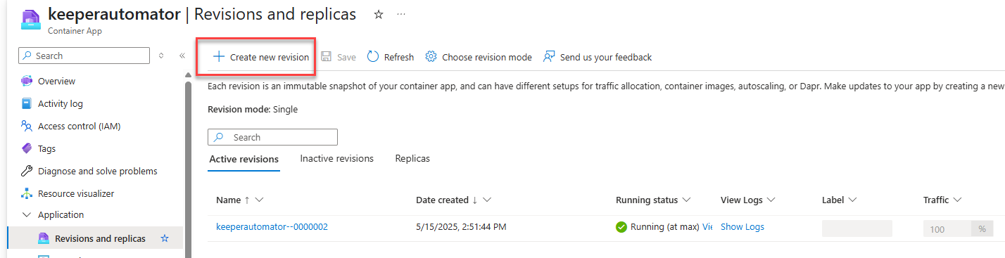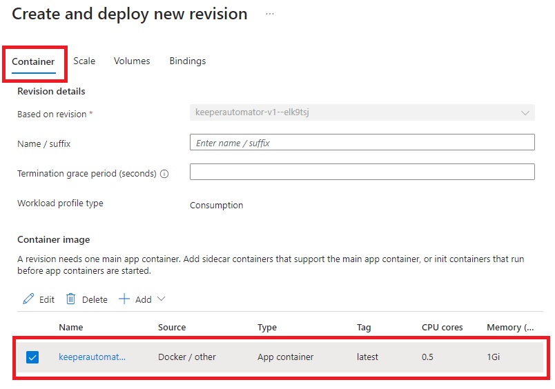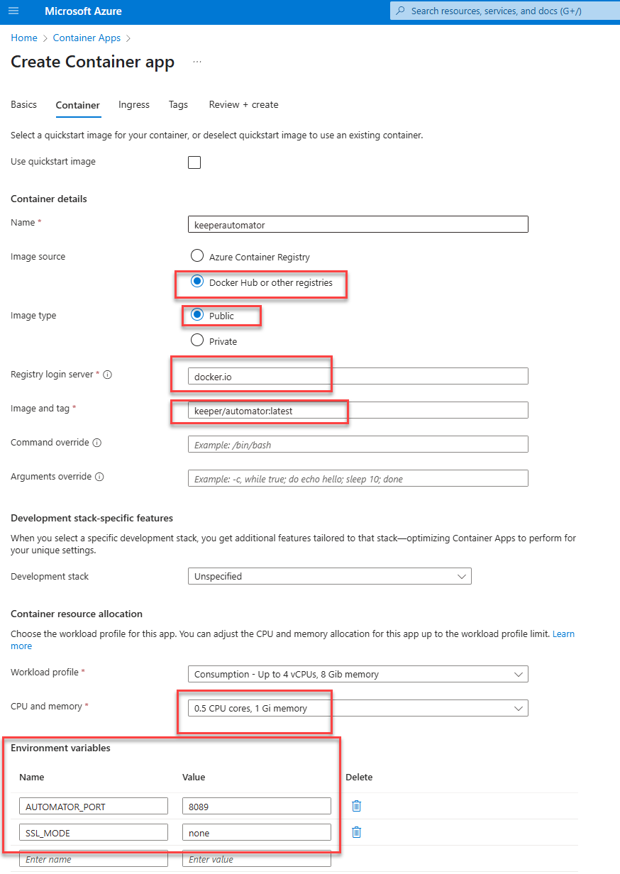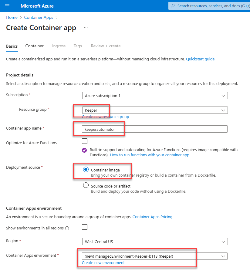* Set the Container App Name to "keeperautomator" or whatever you prefer