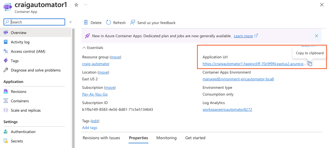 For example, <https://craigautomator1.xyx-1234.azurecontainerapps.io>