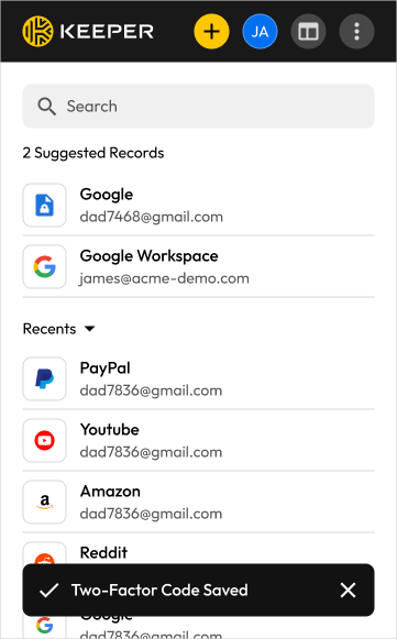 The KeeperFill Browser Extension allows you to autofill your passwords and save new login credentials you create to your vault.