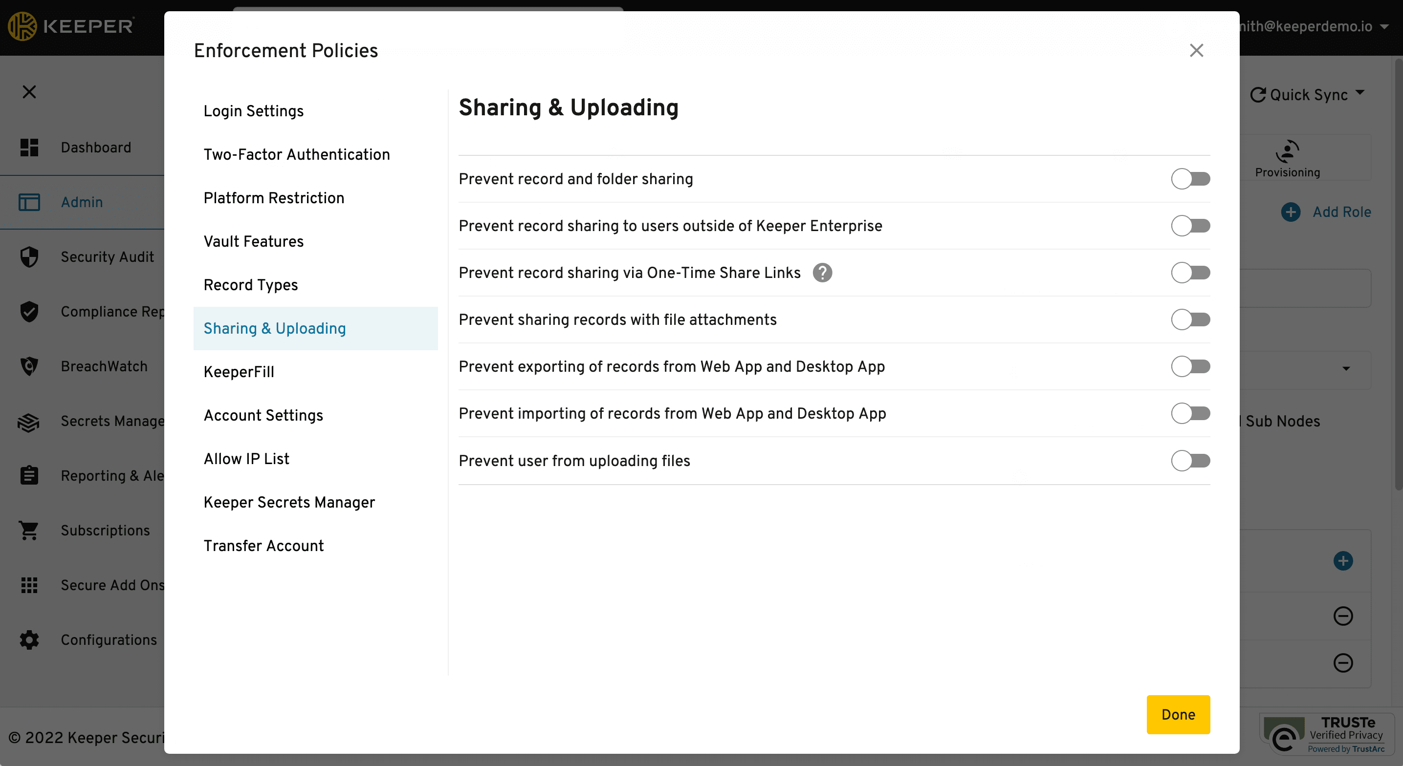 Keeper role enforcement policies provide fine-grained control over the security and functionality of your Keeper environment.