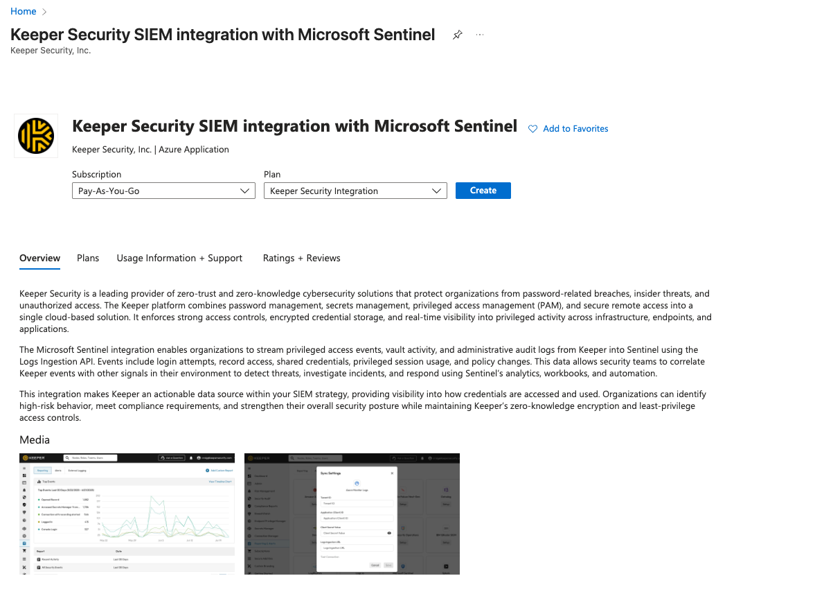 <https://portal.azure.us/#create/keepersecurity.keeper-security-integrationkeeper-security-sentinel-1>
