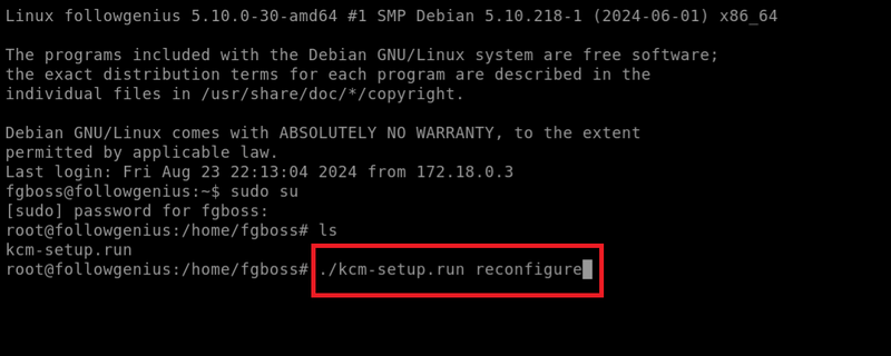 運用時間後に、コネクションマネージャーサーバーでreconfigureコマンドを実行します。