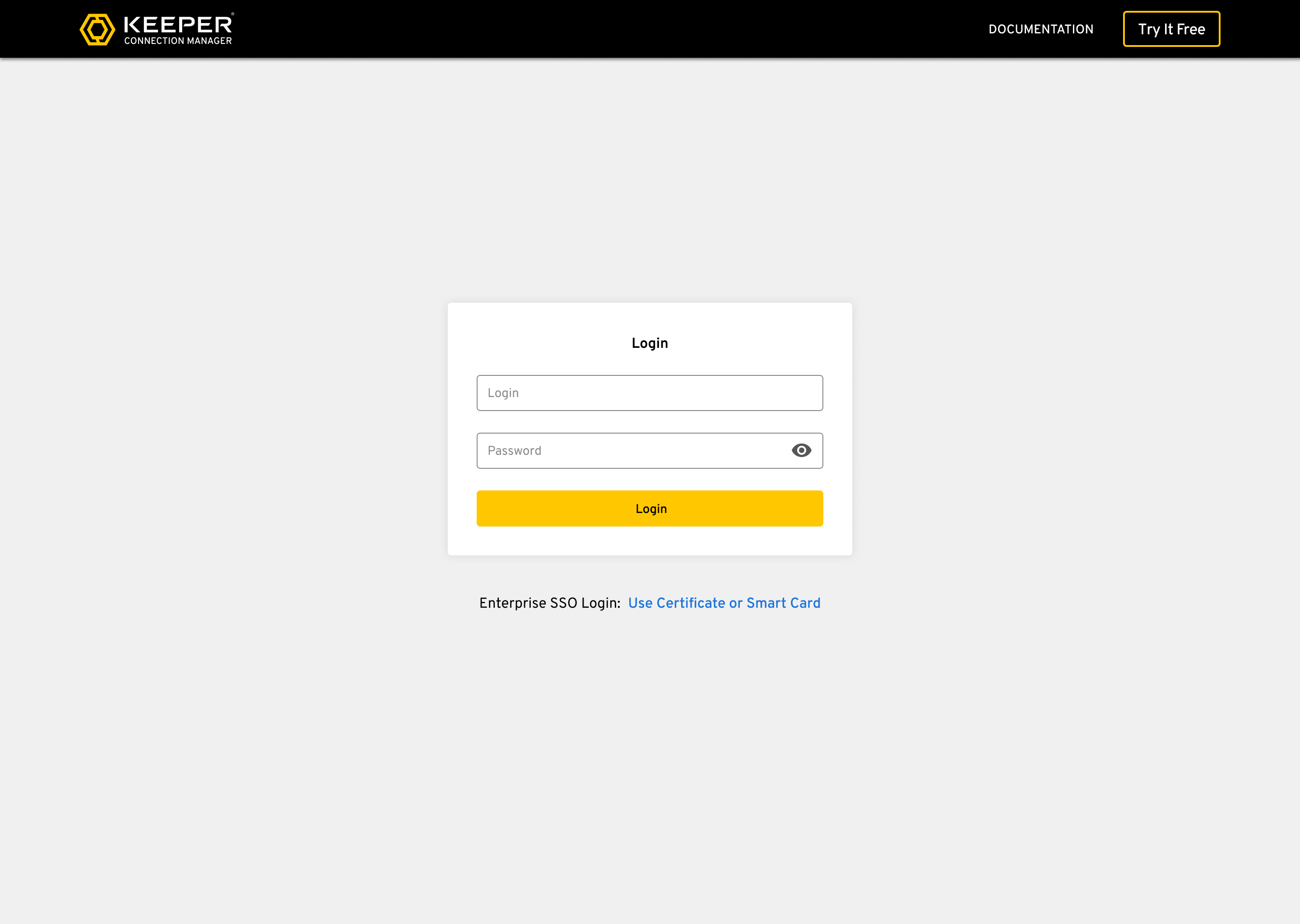 この機能を使用すると、ユーザーはCACを使用してKeeper Connection Managerに対して認証できますが、CACを使用したリモートデスクトップへのパススルー認証はできません。