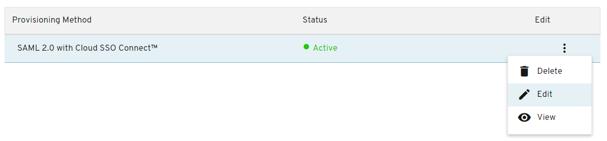 Keeper管理コンソールに戻り、DUOクラウドSSOコネクトのプロビジョニングメソッドを見つけて、**\[編集]**&#x3092;選択します。