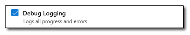 [Configuration] (設定) タブの[Service Options] (サービスオプション) で、[Debug Logging] (デバッグログ) の選択ボックスにチェックを入れます。