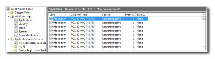 アプリケーション内のブリッジログに加えて、すべてのブリッジログは Windowsイベントビューアーで閲覧できます。