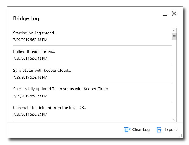 [Publish] (同期) を選択してKeeperブリッジのアクティビティを有効化すると、ログ情報が表示され始めます。
