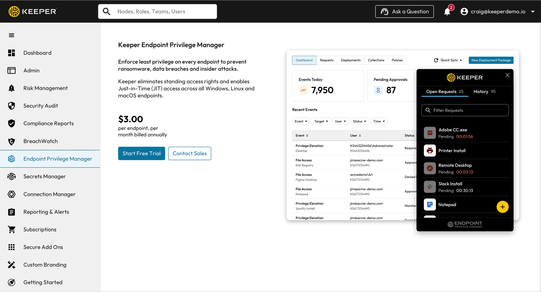 Keeper EPMは**Keeperエンタープライズ**の一部です。次が必要です。
