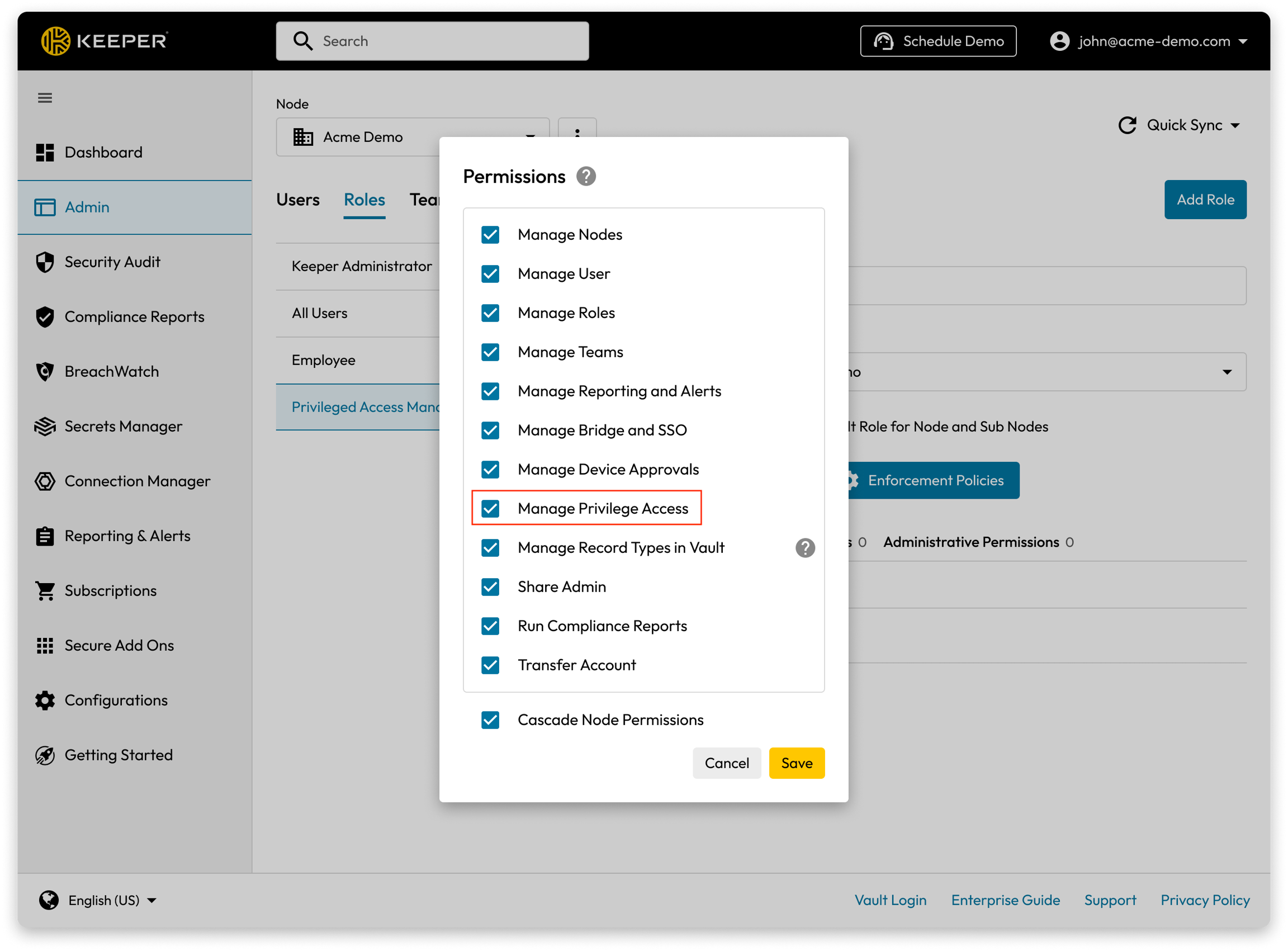 * エンドポイント特権マネージャー (EPM) を含む、有効な**Keeperエンタープライズ**のサブスクリプション。
