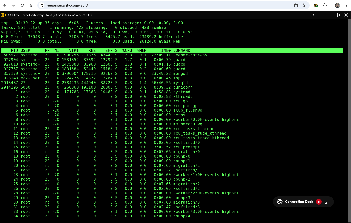 Keeperボルトの中で直接セッションが開き、対象にゼロトラスト暗号化接続が確立されます。