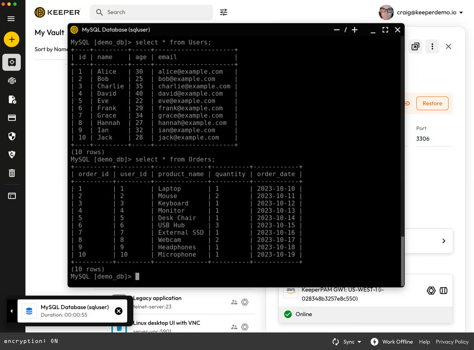 MySQLデータベースレコードのセットアップが完了しました。接続の起動権限が付与されているユーザーは、ボルトからMySQL接続またはトンネル接続を起動できます。