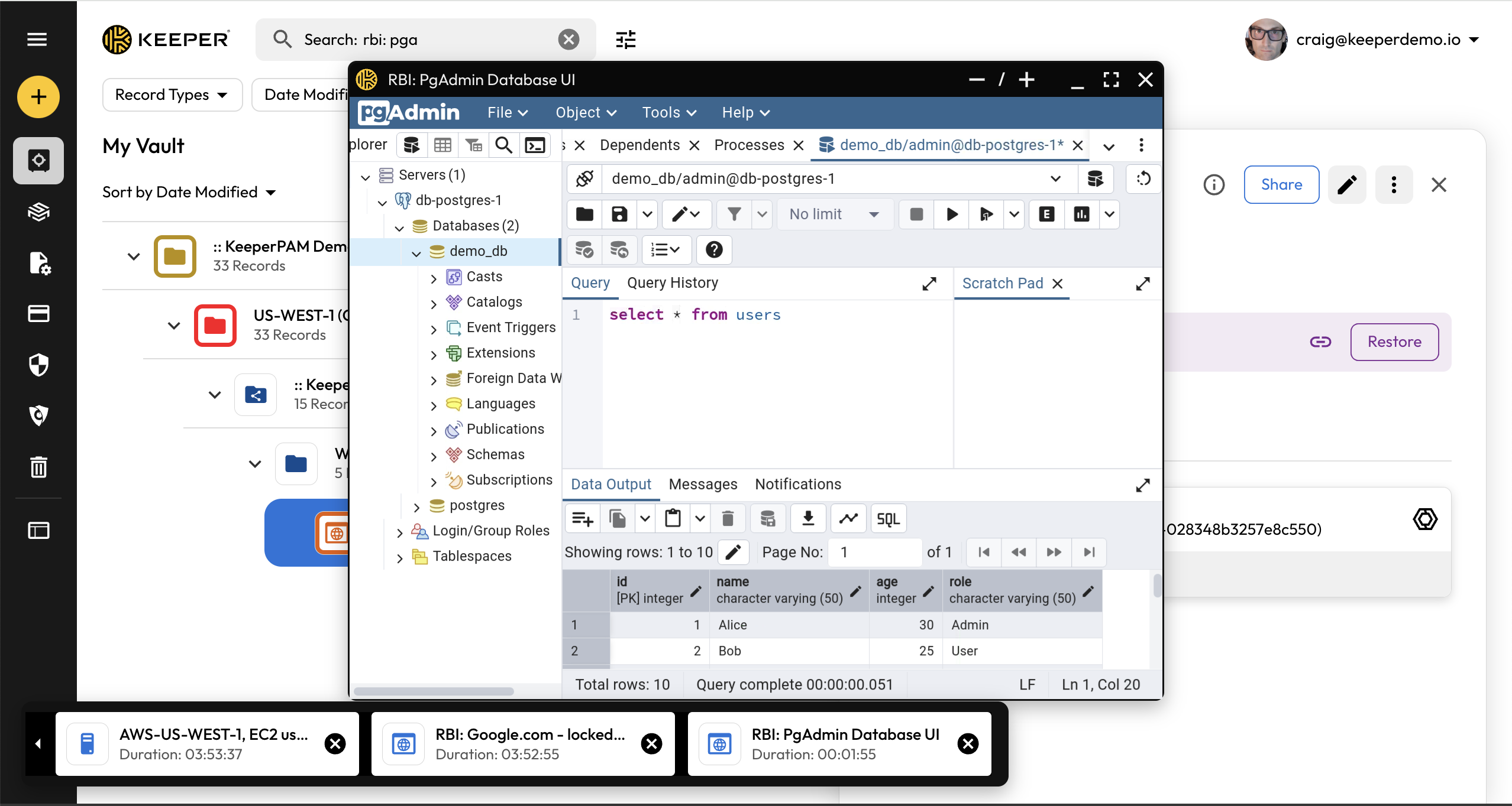 <figure><img src="https://859776093-files.gitbook.io/~/files/v0/b/gitbook-x-prod.appspot.com/o/spaces%2FPL6k1aGsLiFiiJ3Y7zCl%2Fuploads%2FOrLRHmJiiQ4sQmpnHItS%2Fimage.png?alt=media&#x26;token=64e1c49f-6678-49c9-9a13-98d655eec31f" alt=""><figcaption><p>PgAdminウェブUIをデモンストレーションするリモートブラウザ分離 (RBI)</p></figcaption></figure>
