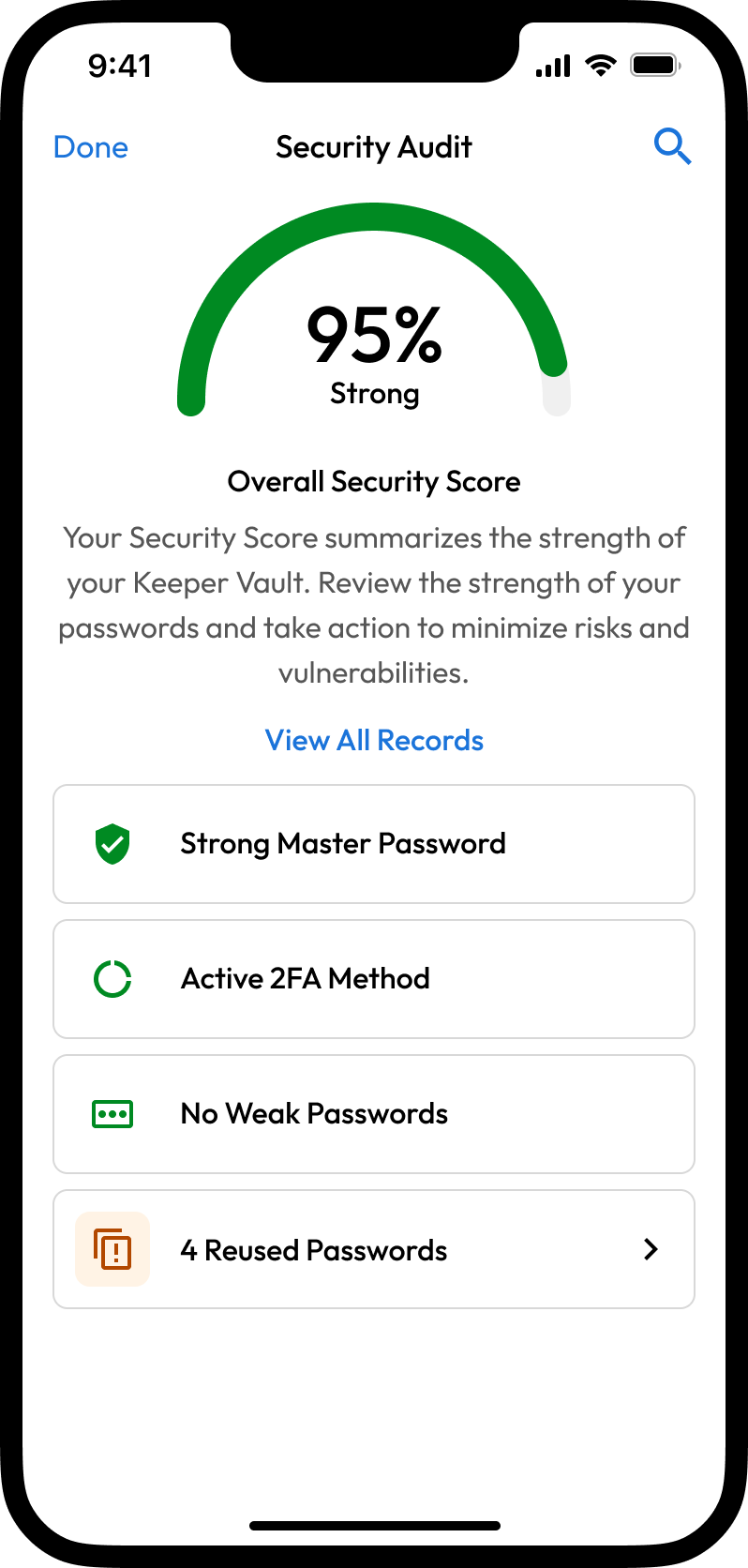* **iOS-7041:** セキュリティ監査スコアの精度を向上させ、他プラットフォームとの計算結果の一貫性を確保。再利用パスワードと一意のパスワードを正しく識別し、共有レコードは個人スコアから除外されるようになりました。また、レコードを新しい所有者に移行した直後に、セキュリティスコアが正しく更新されるよう改善しました。