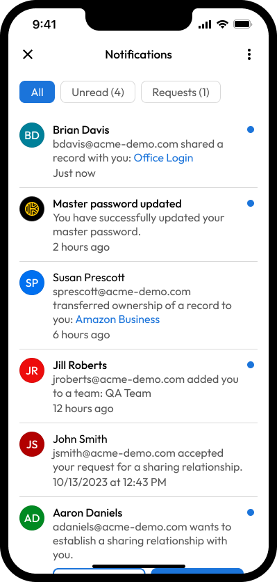 * **iOS-7594:** ボルトのアクティビティやリクエストを一元管理できる通知センターを追加。すべて/未読での通知フィルタリング、アクセスリクエストの承認/拒否、未読メッセージのインジケーター表示が可能になりました。このシステムにより、重要な更新を見逃すことなく、項目を既読にしたり、元のレコード画面にスムーズに戻ることができます。