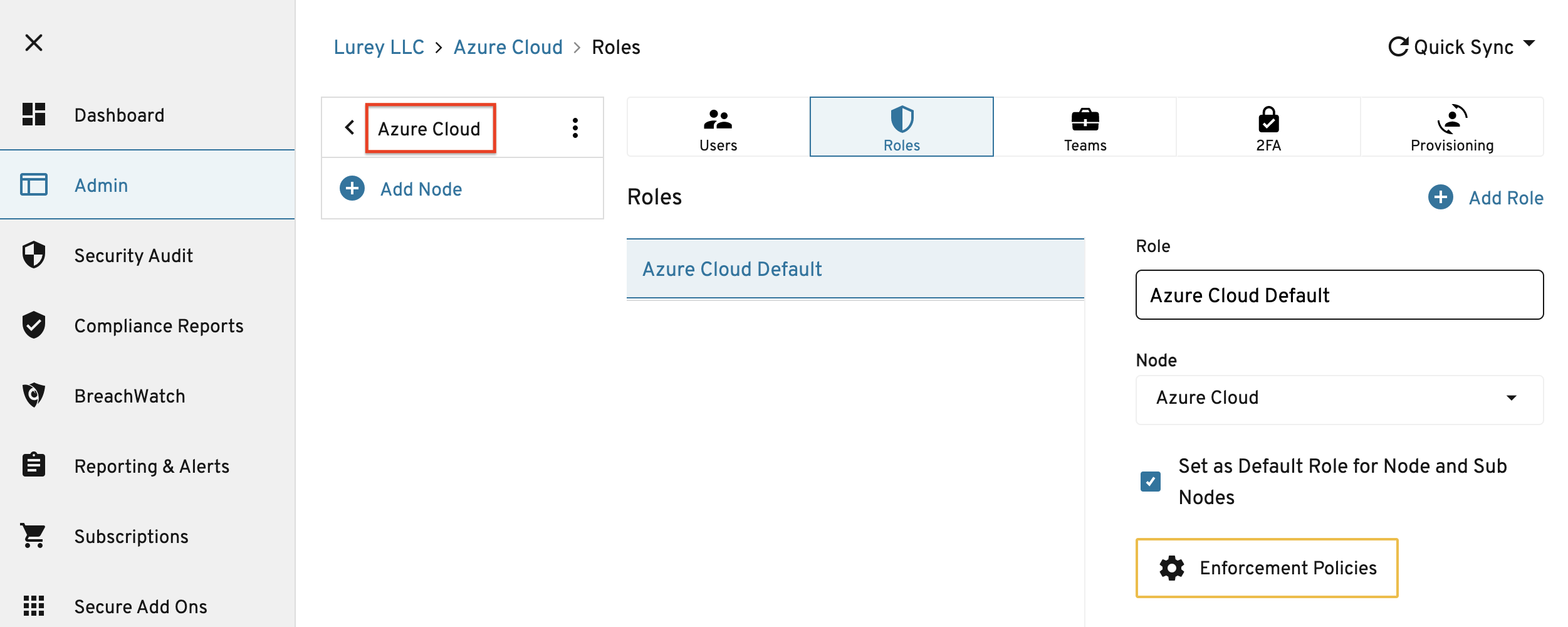 ノード名 (この場合は、Azure Cloud) は、以下に示すように管理コンソールのUIに表示されます。