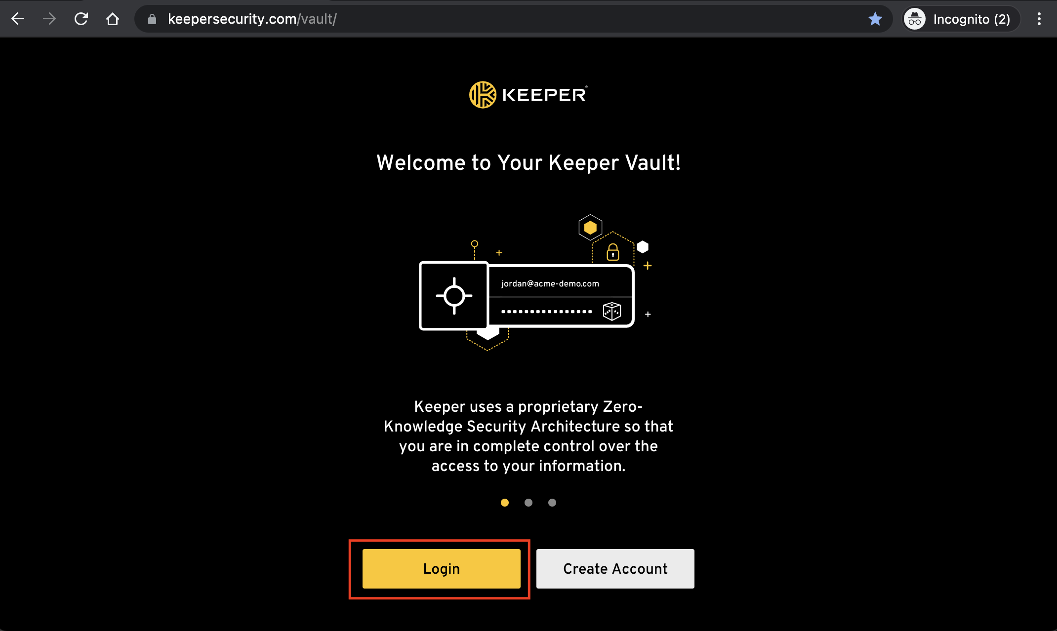最も簡単なテスト方法は、ブラウザでシークレットモードのウィンドウを開いてKeeperウェブボルトへアクセスし、SSOクラウドでログインすることとなります。デバイスの承認を求めるプロンプトは表示されなくなります。