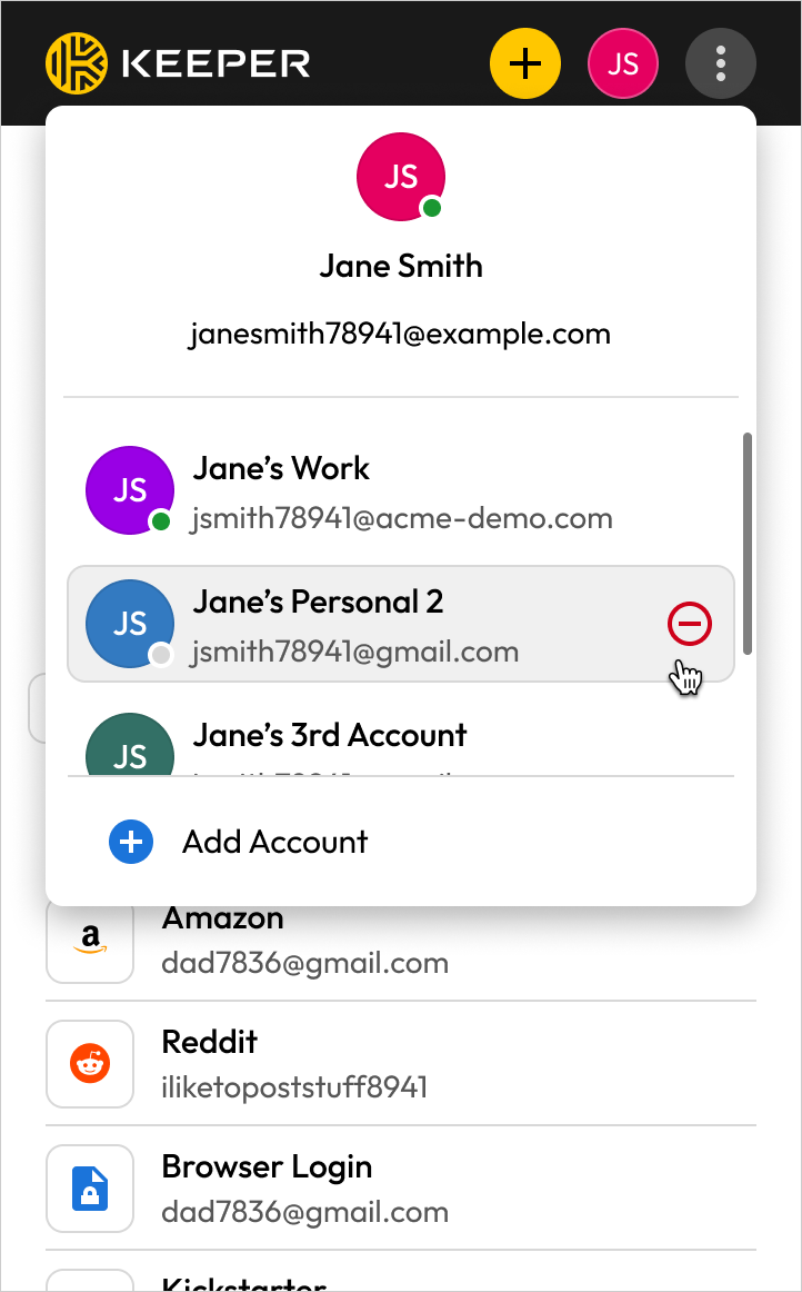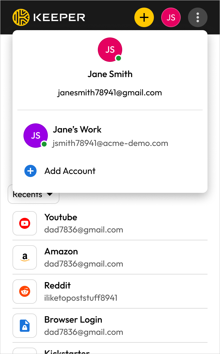 同じデバイスで複数のボルトを利用できるため、セッションからログアウトすることなくアカウントをスムーズに切り替えることができます。