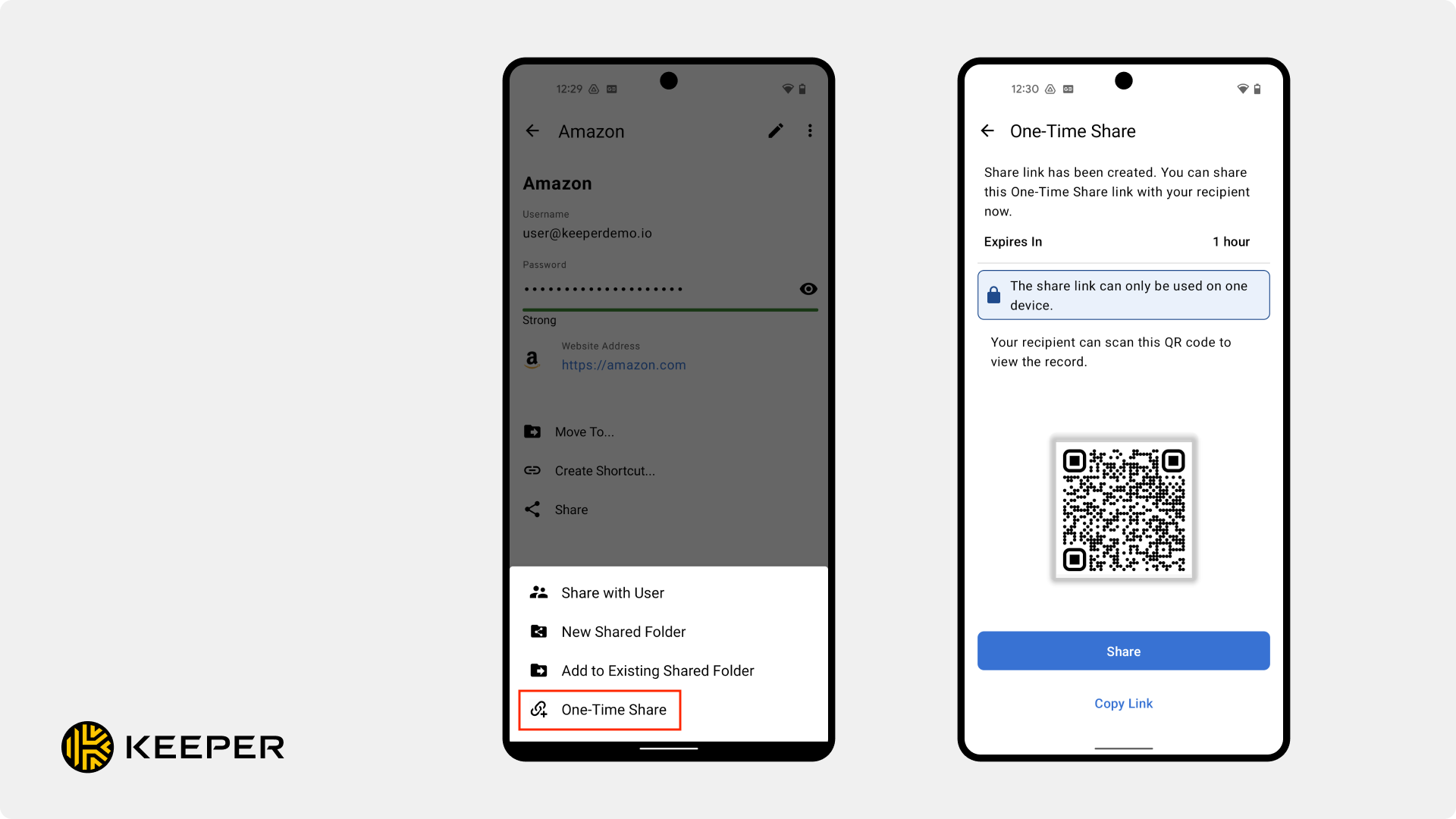 Android用Keeperワンタイム共有