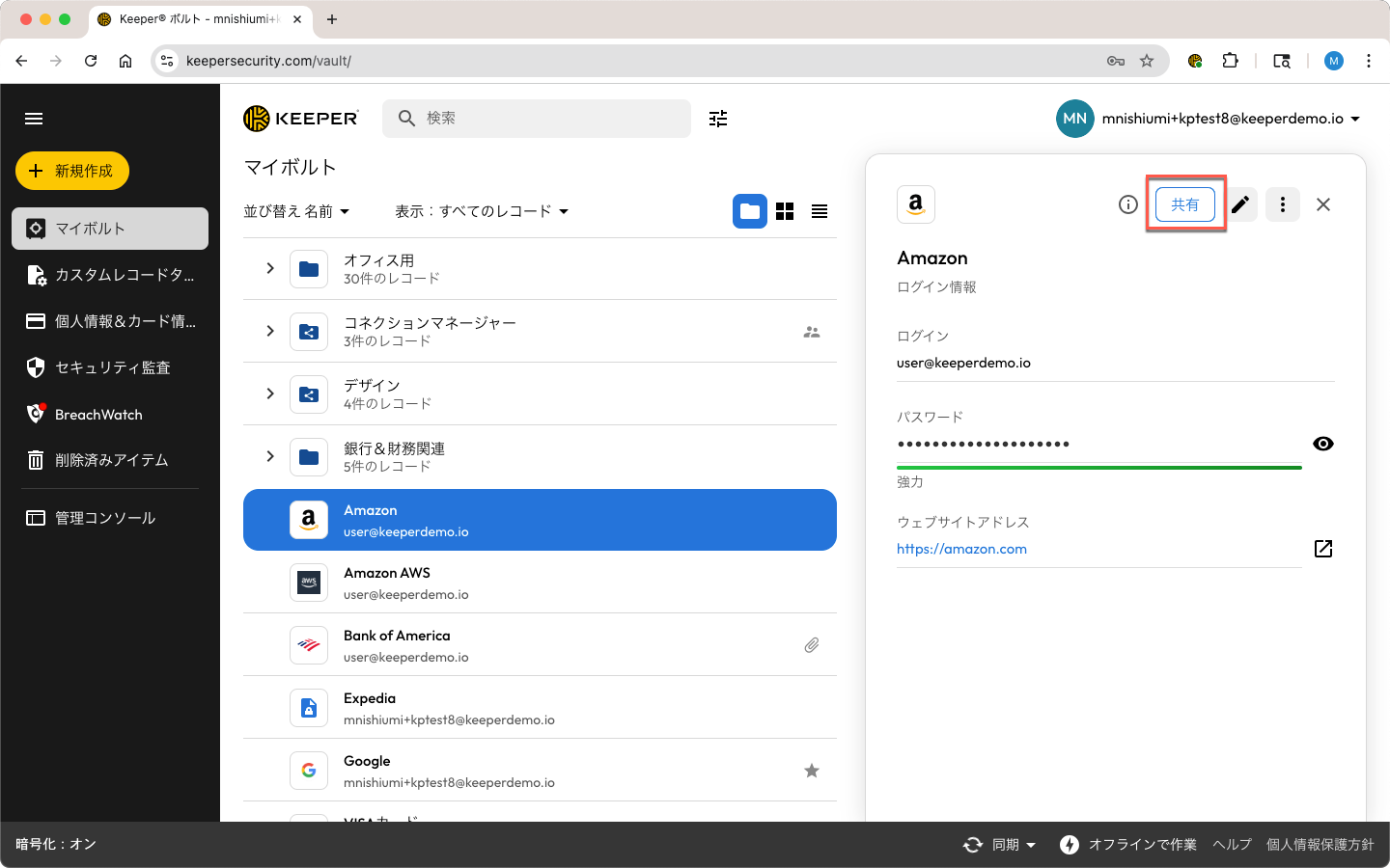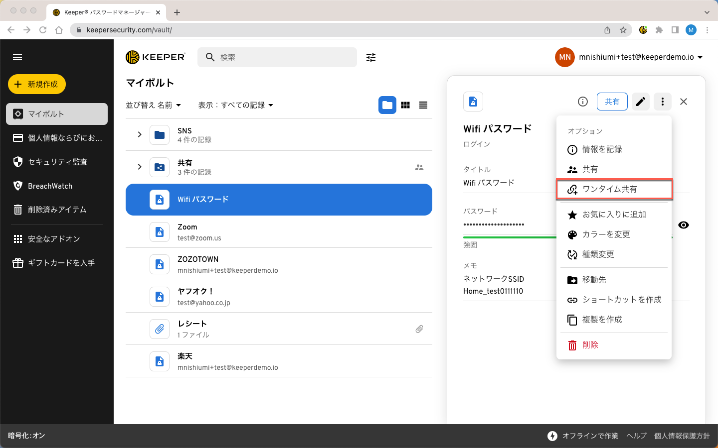 エンタープライズプランをご利用の場合、双方向ワンタイム共有の使用はKeeper管理者によって制限されている可能性があります。